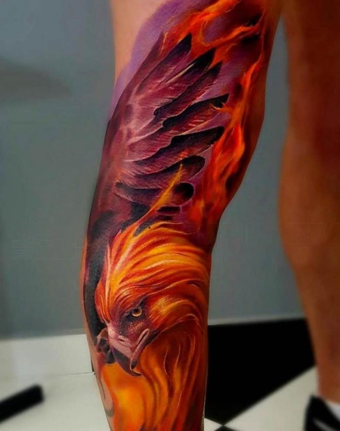 このようなタトゥーは、「橋を燃やす」、「人生を根本的に変える」準備ができている男性が選ぶことが多いようです。危険を冒し、何が何でも勝とうとする傾向、それが彼らの性格なのです。どんな状況でも、トップに立とうとする、一番になろうとする。このタトゥーを持つ人は、どんな問題も解決でき、自分自身と調和していることを絶対に知っています。そんな人たちの炎の象徴が「決意」と「逞しさ」です。