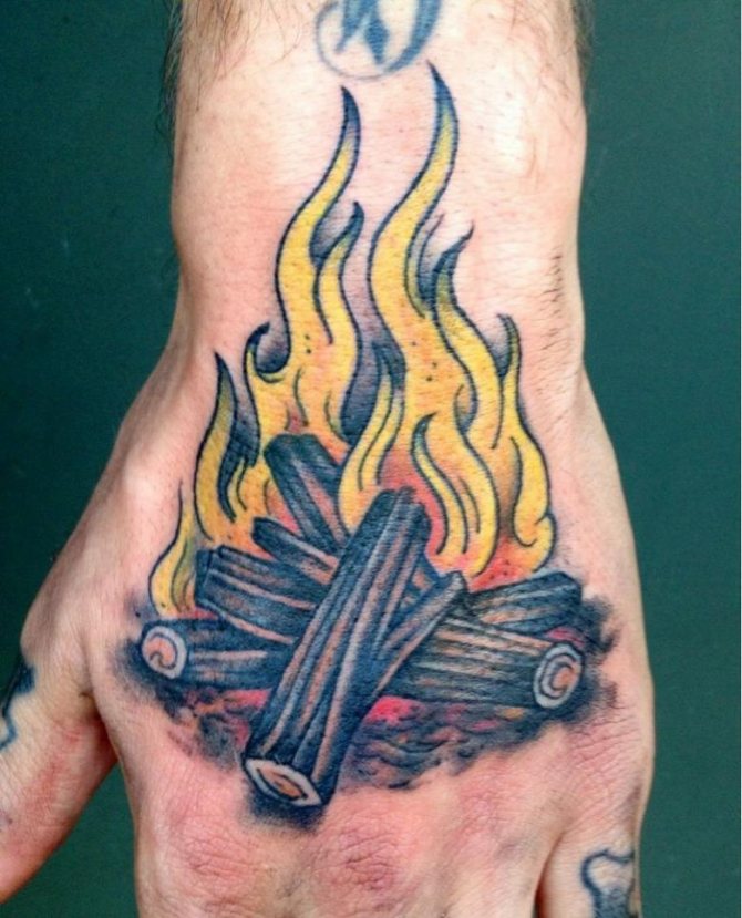 火と炎は、人間がその皮膚に背負うようになった最も古いシンボルの一つである。太陽光、光のエネルギー、魔力、力などを連想させる。これが、現在も使われている「火」のタトゥーの意味です。
