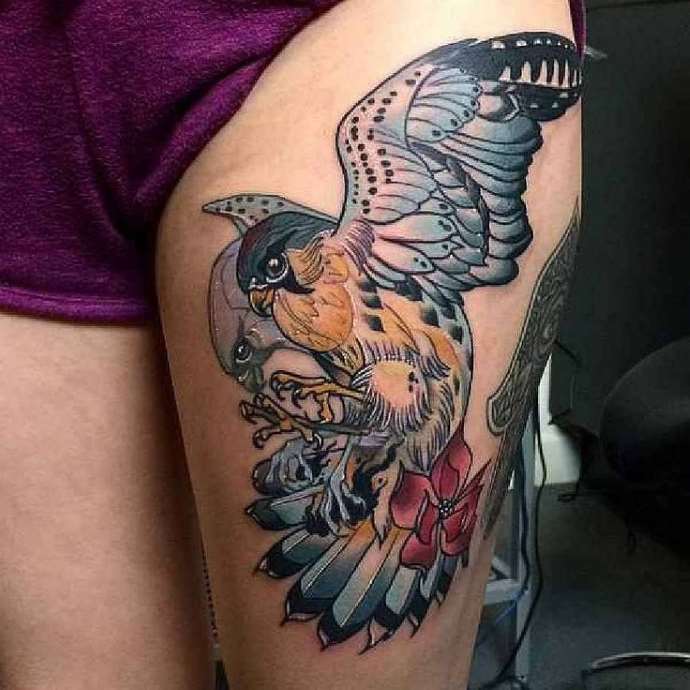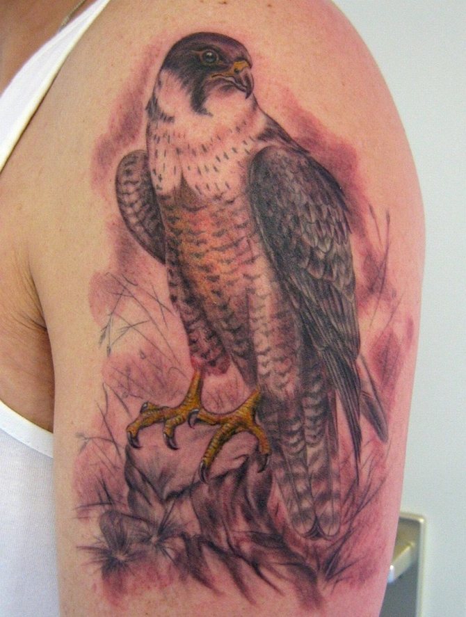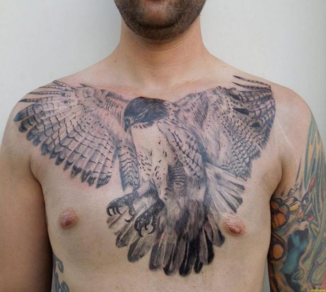 もちろん、そうしたイメージは今でも男性に選ばれています。女の子は、より繊細で女性らしい絵になる傾向があります。そのため、女性の体に鷹の刺青を入れることは珍しい。意味は男性の変種と実質的に同じです。