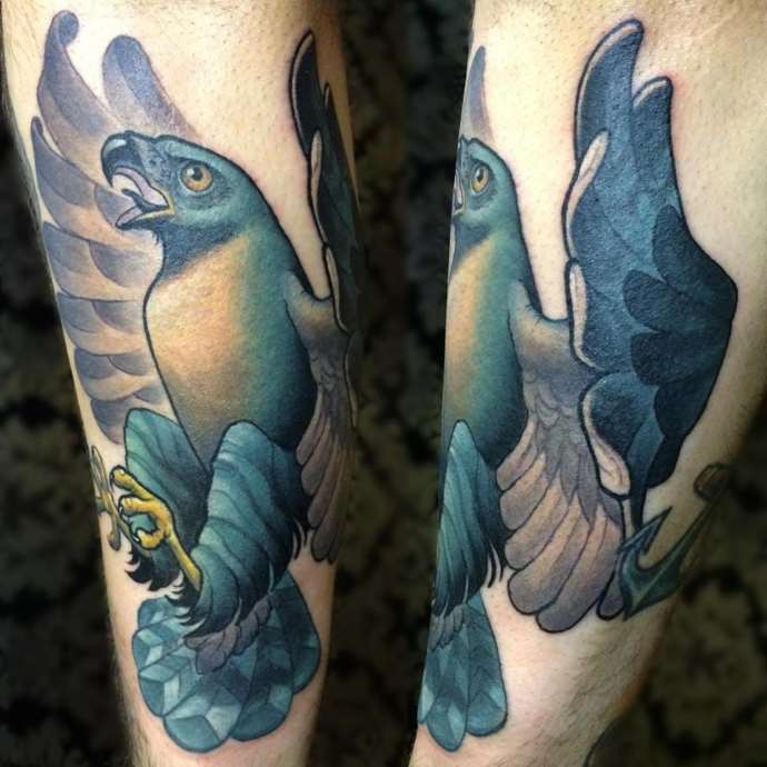 鷹のタトゥーは、人生とそれが与えるものすべてに感謝することを知っている人、自分にも他人にも常に誠実で正直な人に似合います。彼らは決して心を失わず、選んだ道の最後まで行くことで、新たな高みへ到達し、心の望みを手に入れることができるのです。