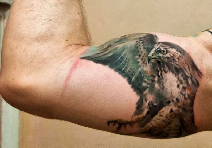 現代社会は、私たちが従おうとするさまざまな法律や流行を常に指示しています。例えば、ファッションの分野では、服装や髪型、身だしなみなど、常に新しいスタイルが発信されています。現代社会では、どんなスタイルにも欠かせないのがタトゥーです。適切に選択され、高品質な画像は、あなたが実証したくない任意のスタイルに印象的な追加となります:ロマンチックな自然、残忍な性格、リラックスしたり、控えめな。ただ最初に気に入ったデザインに釘付けになるのではなく、そのタトゥーがある種のメッセージや意味を持ち、あなたの継続であることが重要なのです。ボディアートは古くからある芸術で、人々は何世紀にもわたって自分の体を特別なイメージで飾ってきました。昔も今も、野生の動物や鳥をイメージした装飾を好む人は少なくありません。かつては、刺青は描かれた動物の強い性質を身につける人に伝えると考えられていましたが、現在ではそのようなデザインは単なる装飾に過ぎません。しかし、古代から、すべてのタトゥーには明確な解釈があります。例えば、鷹のタトゥー。見事な鳥である。優雅で決然とした猛禽類である鷹は、必ず獲物に追いつく。鷹のタトゥーのスケッチは、男性と女性の両方によって選択されます。猛禽類は、その美しさ、スピード、正確さ、強さなどで賞賛されています。しかし、鷹をあしらったタトゥーにはどんな意味があるのでしょうか?今回はその様子をお伝えします。