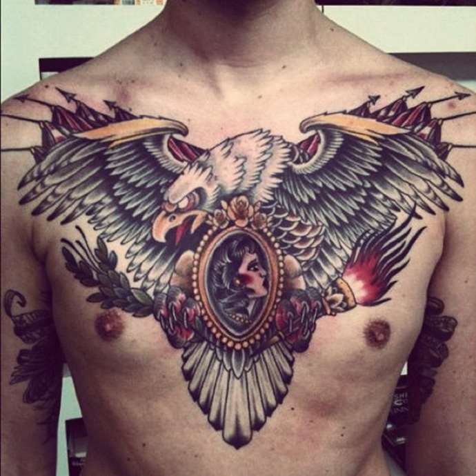 鷹のタトゥーは、肩、背中、腕、前腕によく似合うでしょう。デザインを施す部位を選ぶ際には、タトゥーの大きさ、意味、技法などを考慮する必要があります。経験豊富なタトゥーアーティストが、正しい選択をするためのお手伝いをします。彼は親切にアドバイスしてくれるだけでなく、あなたの希望を考慮した上で、個々のスケッチの刺青を準備してくれます。