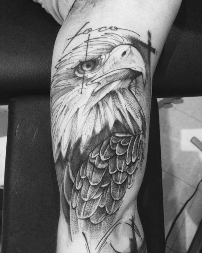 より頻繁に、タカの入れ墨のファンは男性のセックスのメンバーです。鷹のイメージは、人を最後まで導く勇気、誇り、決断力の象徴であり、どんな障害にも負けず、目標に向かってまっすぐに突き進んでいく。鷹の絵の男性は、立派なパートナーを選ぶと、最後まで忠実に尽くしてくれるでしょう。鷹は名誉の象徴でもあり、彼らの血管には常に血が騒いでいる。