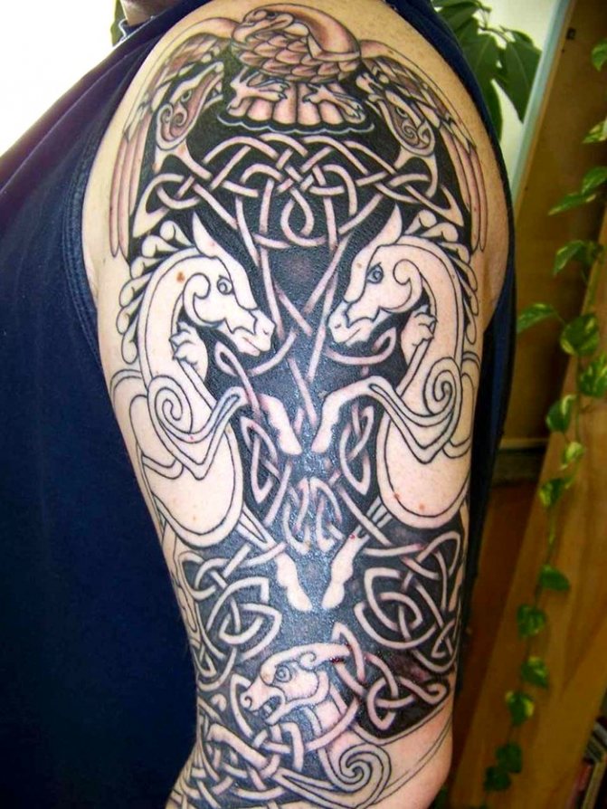最も人気のある組み合わせは、ドットワーク、ポリネシア、トライバル、ブラックワーク、オーナメントなどの技法を用いたケルトタトゥーです。水彩画や鮮やかな色のタトゥーも人気があります。複数の色顔料を使用して塗布した場合。多くの場合、これらの入れ墨は女の子によって選ばれます。色を塗るときは、ケルトの入れ墨の神秘性や魅力を失わないようにすることが重要です。