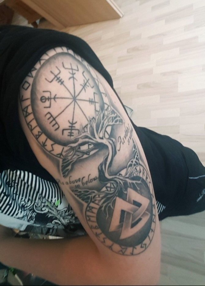 そして、円は4つの要素を結びつけているのです。十字架を描いたタトゥーには一つの特徴があります。それは、体のどの部分にも非常に調和のとれた外観になることです。