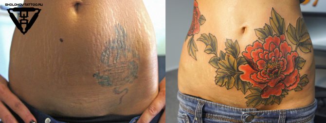 - 萎縮している。水ぼうそう、にきび、やけど、軽い外科的処置などが原因で発生します。凹凸のように見え、健康な肌とは色も異なります。そのようなマークは、タトゥーで隠すことができます。