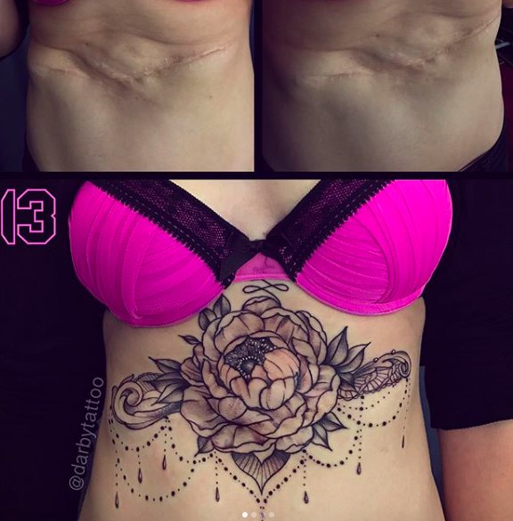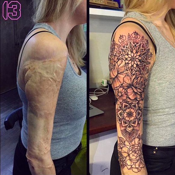 その後、彼女は自分でサロンに行き、タトゥーを彫り直した。ウォークインではなく、自社の顧客だけを相手にしていたのだ。"機材があるから一緒にやろう "と仲間から言われた。何もわからず、経験も少ないと言ったら、「教えてあげる」と言われました。それがきっかけでサロンに入り、2年間働きました。その後、みんなと自分のスタジオを開いたのですが、意見の食い違いで閉鎖することになり、その後、いくつか仕事を変えて、13にたどり着きました。