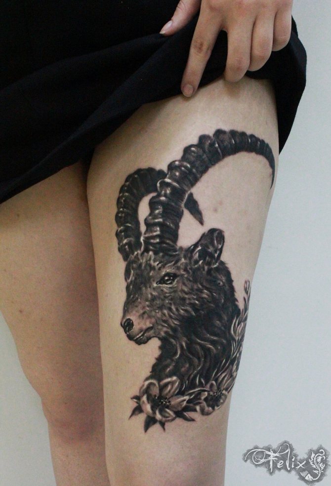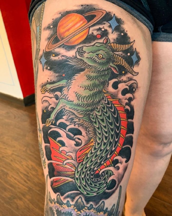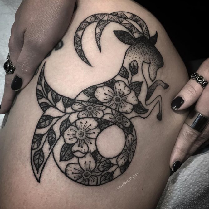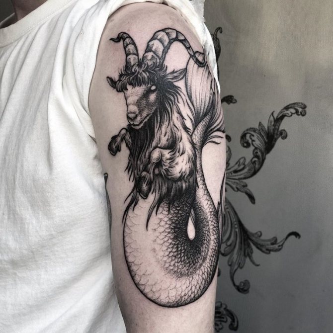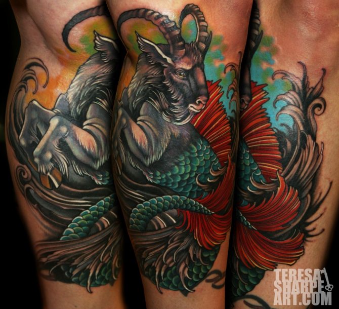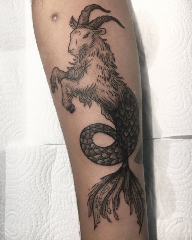 ほとんどのバリエーションでは、山羊座の入れ墨は、何らかの方法で問題の動物が2つのエンティティ、胴体の2つの異なる部分を組み合わせているため、1つの定義で説明されていません。ヤギの角と蹄は、昔から勇気と体力の象徴とされ、これらの部位で自己主張することができる。また、尾は素早く泳ぐことに貢献し、生命の流れとともに泳ぎ、どんな状況にも適応できる能力と解釈することができる。