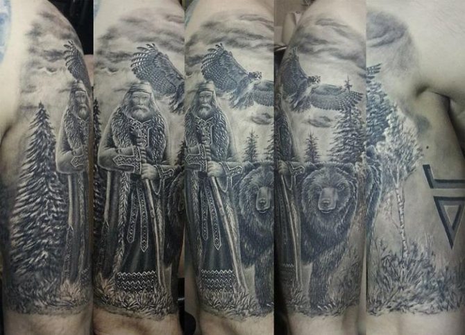 魔術師、詩人、音楽家、森のほとんどすべての獣が彼の力を借りており、人狼は忠実な助手であった。偉い人の放浪の旅には、この神も旅人の守護神として扱われた。強大な神ヴェレスが、自ら森の主となったのだ。このイメージのために、彼らはヴェレス神に熊の足跡の紋章を属性として割り当てた。お祝いの席では、ヴェレスがヒグマに化けて登場するのがお決まり。