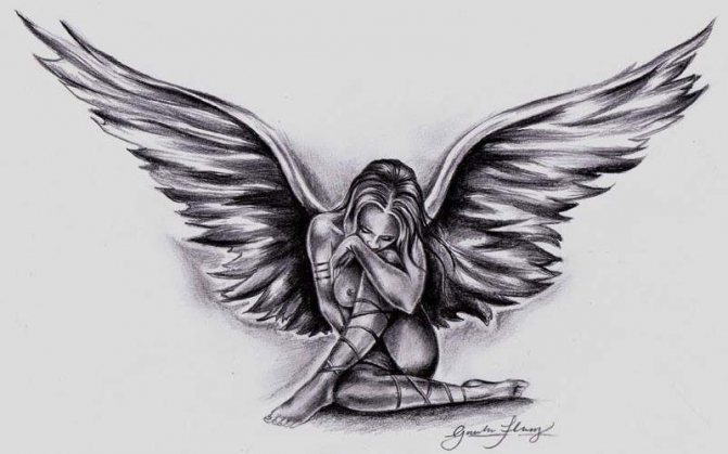 タトゥーの天使、天使の羽: 男性と女の子のためのイメージの意味、写真