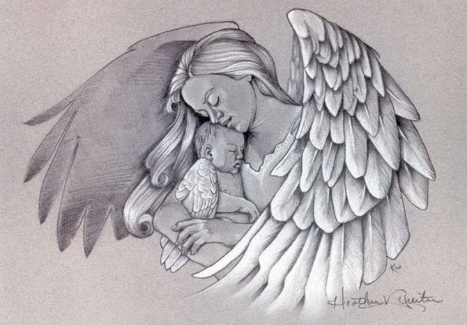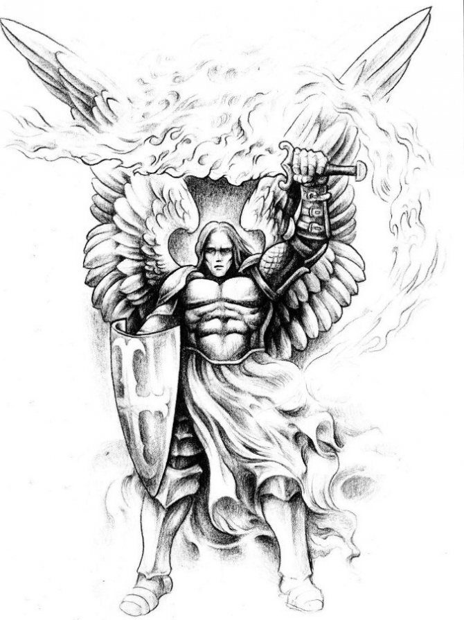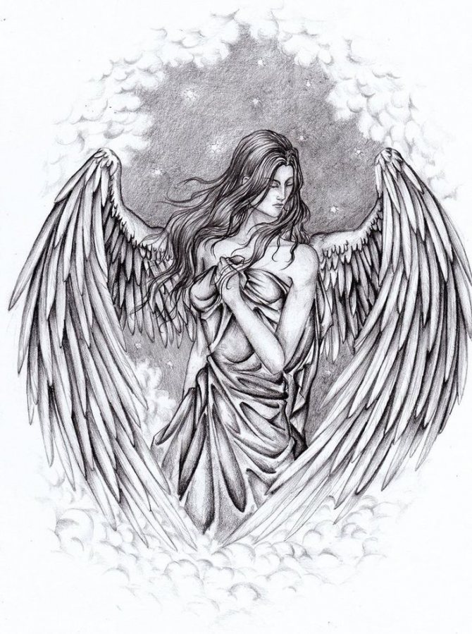 どの天使のイメージを選ぶかはあなた次第です。以下の例をご覧ください。 祈る天使は、すべての逆境、邪悪な目からタトゥーの持ち主を守る。