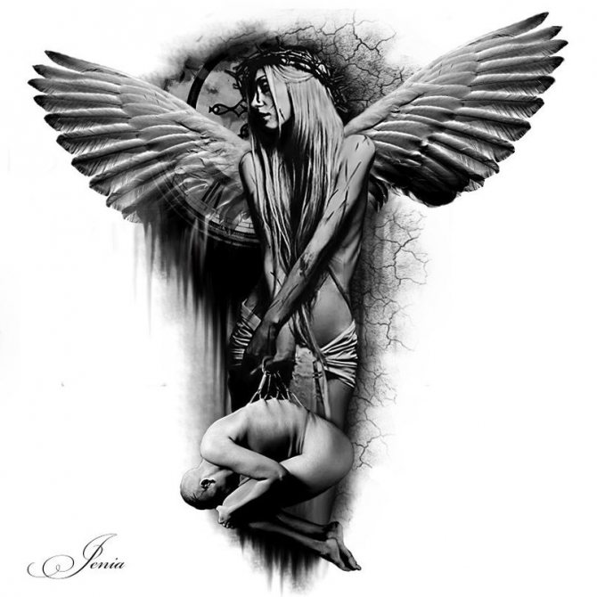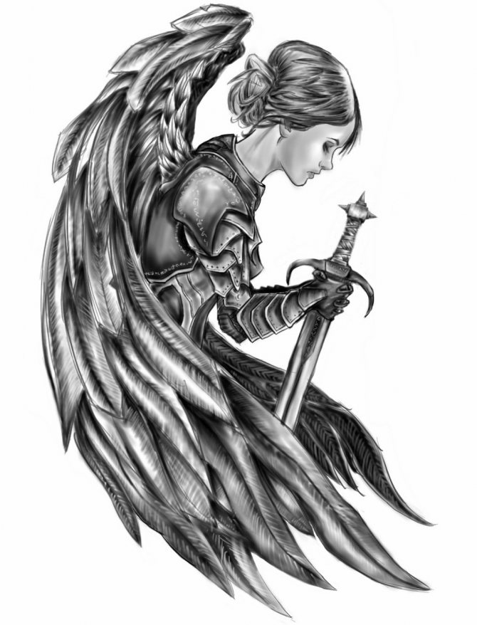 守護天使のイメージのタトゥー:どのような種類がありますか、写真