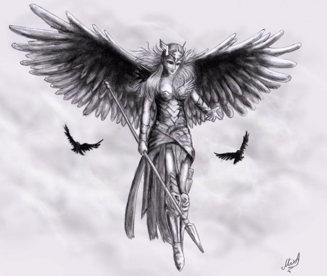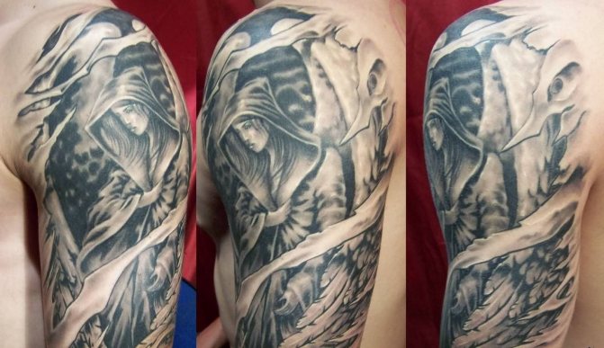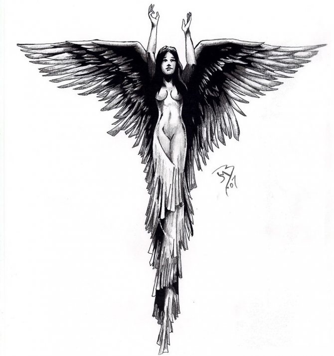 人の魂を刈り取る ダーク・エンジェル (つまり、死の天使)。これらの存在は、人が生者の世界を去る時、もうその時が来たのです。このようなタトゥーは、人間にはほとんど見られません。