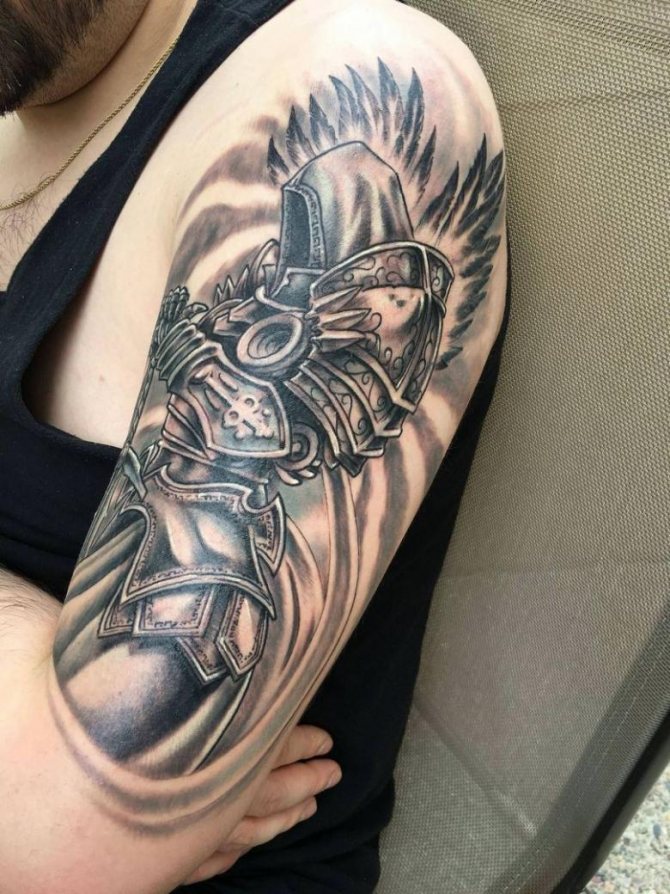 このイメージの男性のタトゥーは、強さと優しさを象徴しています。そのような人は、いつも頼りになるし、彼の強力な翼の下に安全に守られている。