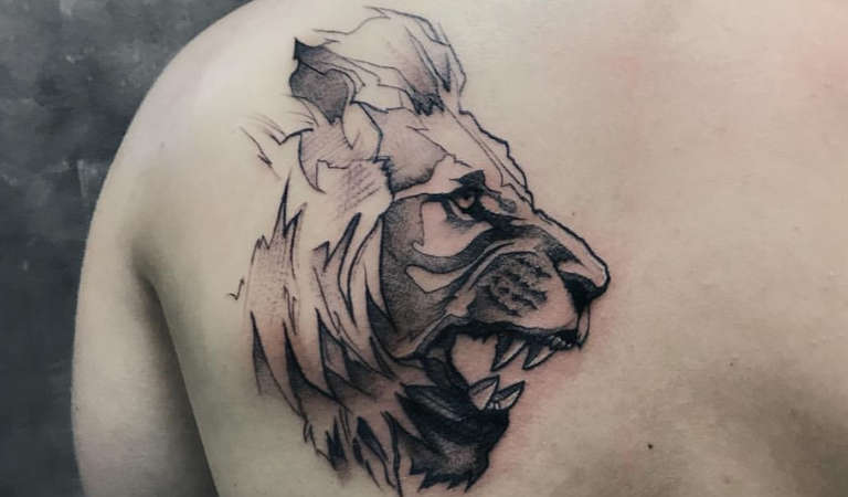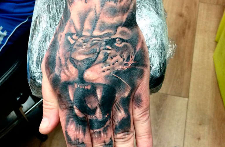 Un lion en tatouage est un désir de puissance de son propriétaire, l'animal racontera le courage et l'indomptable de son propriétaire, son courage et son agilité, sa fierté et sa noblesse naturelle. En tant que "roi" parmi les bêtes, il rappellera l'assurance de l'homme, son tempérament sévère et son désir d'être le premier. Son image ne peut être portée que par des personnes ambitieuses, brillantes, peu enclines à supporter les inconvénients, subjuguantes et capables de contrôle. Le rictus agressif ne fait que déclarer de façon éclatante à la société le tempérament et le tempérament chaud du propriétaire du tatouage avec un lion grimaçant.