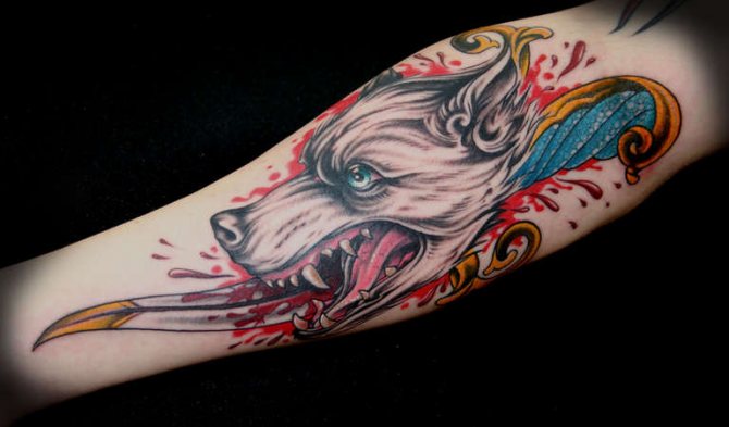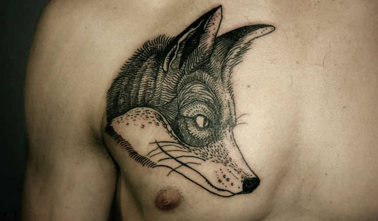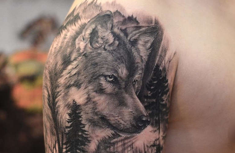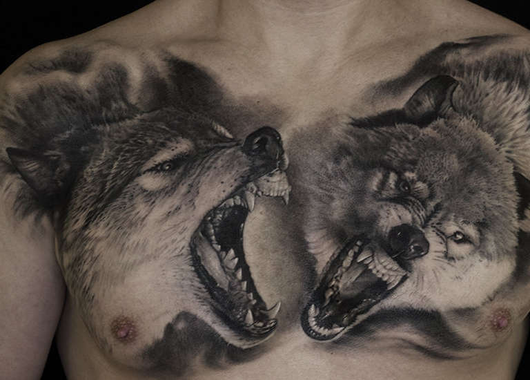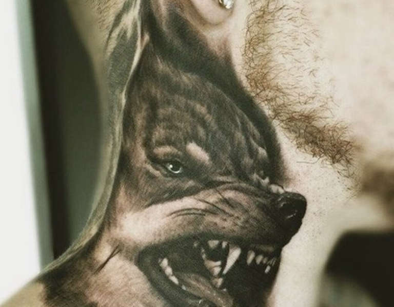 Wolf - Le tatouage signifie la solitude, la loyauté envers leurs opinions et leurs préjugés, la force et la volonté de se défendre.