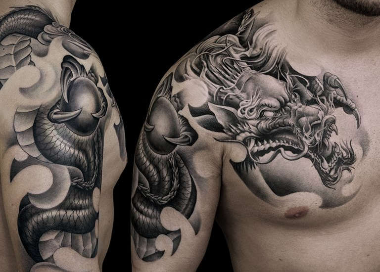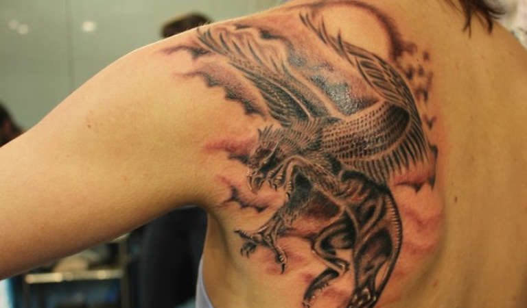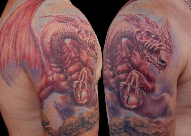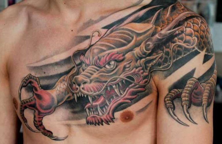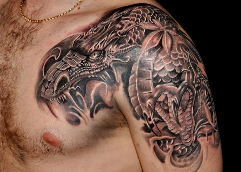 Le meilleur choix pour un tatouage brutal est les épaules, car elles sont responsables de la fiabilité et de la capacité à défendre un homme. Ici, les animaux sauvages et les personnages mythiques sont plus susceptibles d'être tatoués.