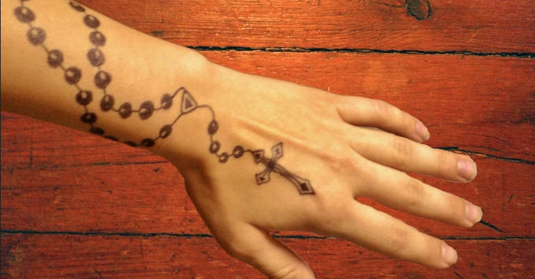 Le poignet est une zone de taille moyenne sur le corps dans le contexte des tatouages, on y trouve donc souvent des symboles, des insectes et des signes religieux. Le poignet est une partie du corps de taille moyenne dans le contexte d'un tatouage, d'où le symbolisme et les insectes et insignes religieux.