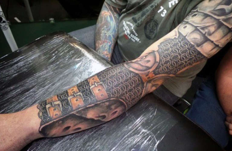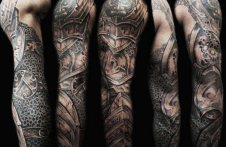 Le caractère masculin est souvent exprimé dans des inscriptions ou des portraits de personnages de films brutaux, de personnages de dessins animés, de personnalités célèbres. Parfois, on demande aux gars de bourrer une manche entière de différents textes ou tatouages miniatures, pas toujours liés par une intrigue et une signification, le corps servant simplement de base. Il peut s'agir d'animaux, de dessins animés, de motifs végétaux ou animaux, de personnages de bandes dessinées, de slogans, d'emblèmes ou même d'un blason avec un slogan.