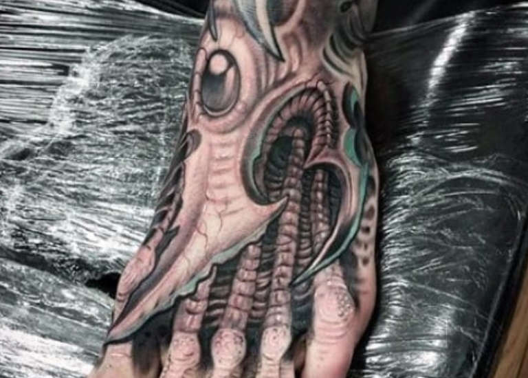 Le pied est la zone du corps responsable de l'attitude et des actions. Les tatouages de jambes brutaux visent à mettre un homme sur le droit chemin en évitant les erreurs.