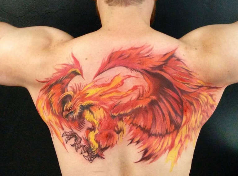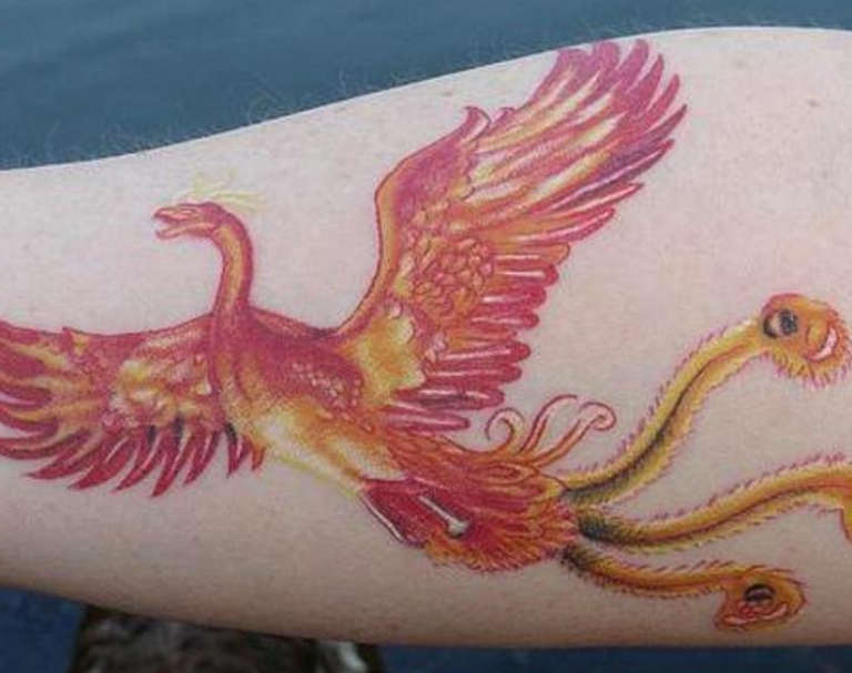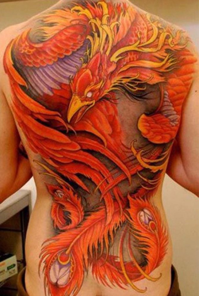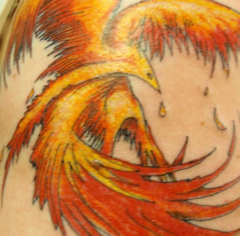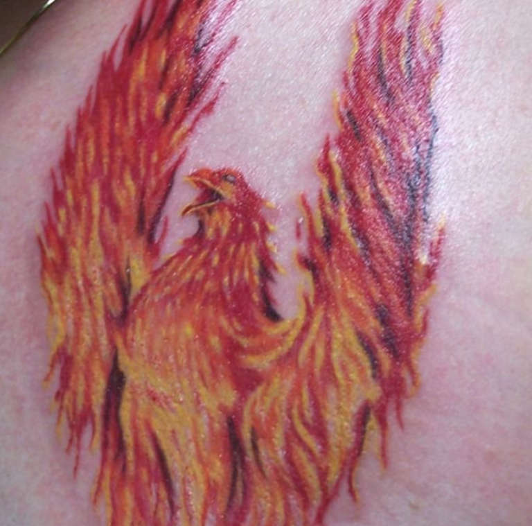 phénix rouge - un tatouage qui évoque l'auto-immolation d'une personne ;