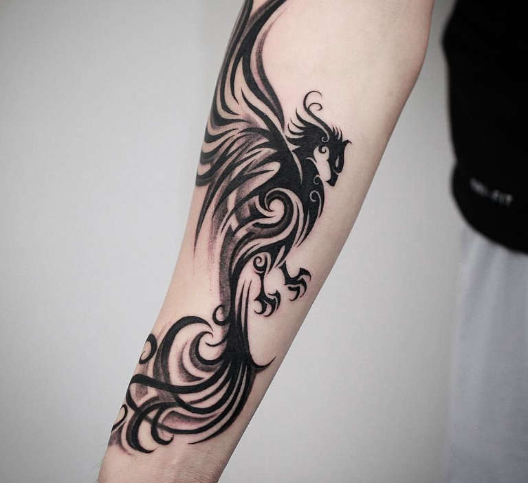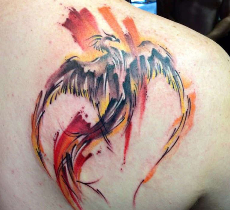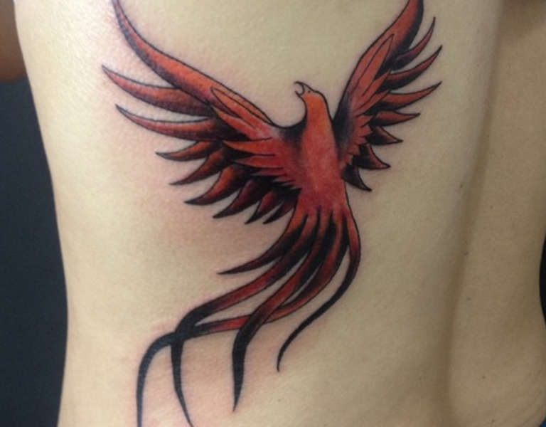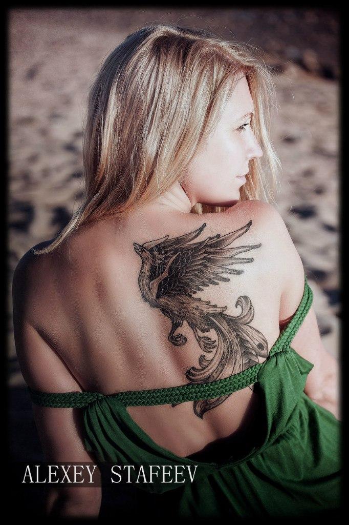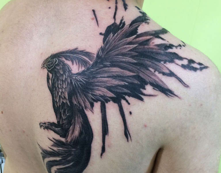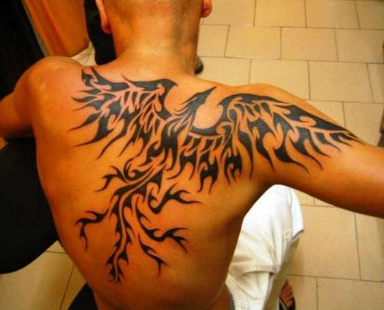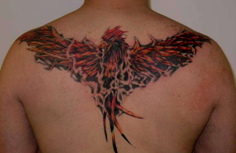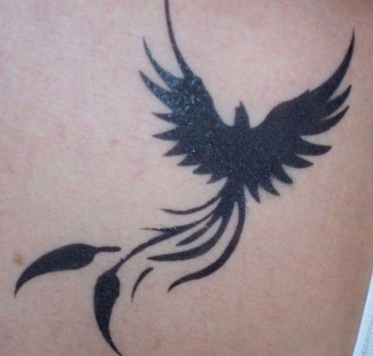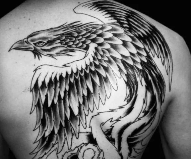 Phénix volant - Ce tatouage indique un désir d'indépendance et de liberté totale, la capacité de réfléchir librement, de se protéger de la banalité, de la médiocrité et de l'ennui.