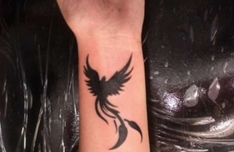 Original sur le poignet serait une petite image soignée d'un phénix ou d'un oiseau sous la forme d'un symbole. Le plus souvent, un tel tatouage sert de talisman contre les forces obscures, les malveillants et la malchance.