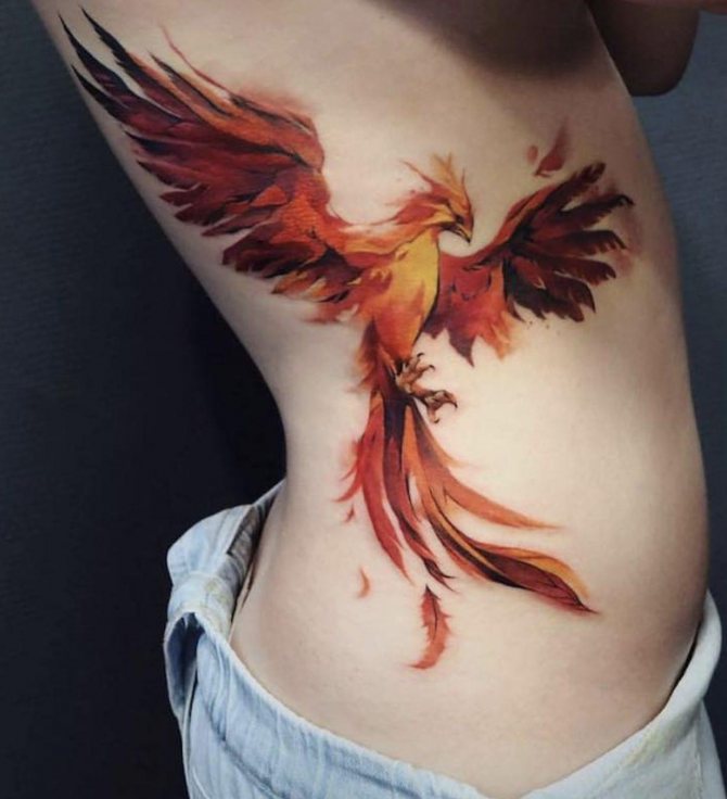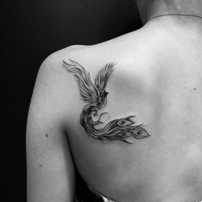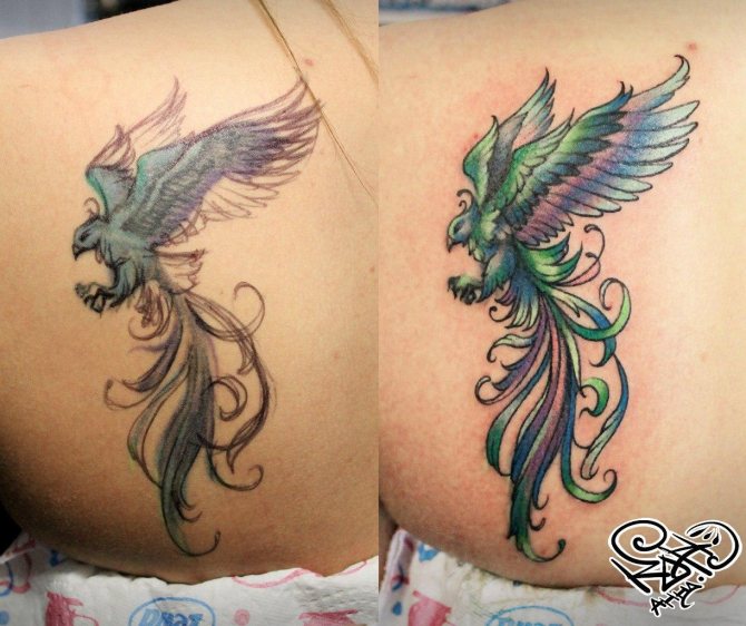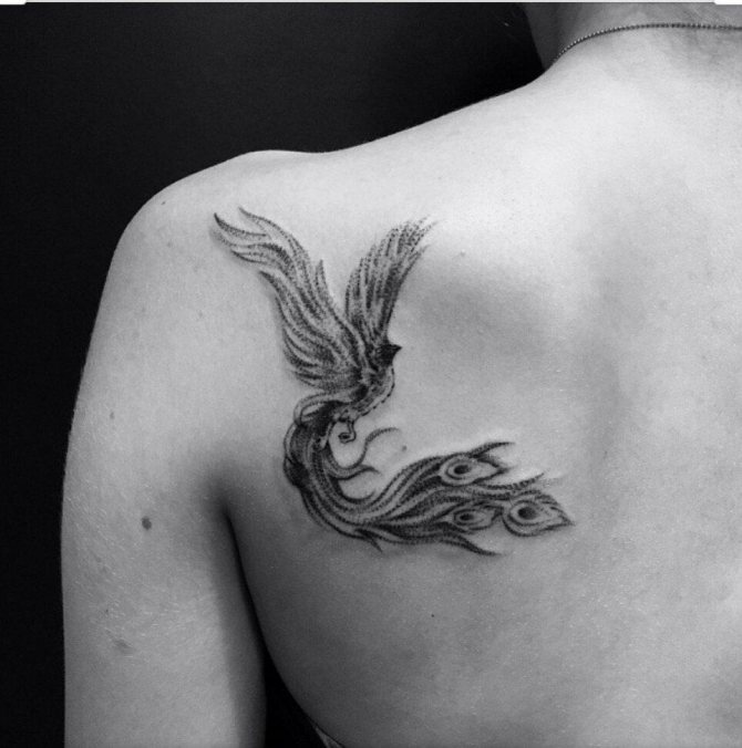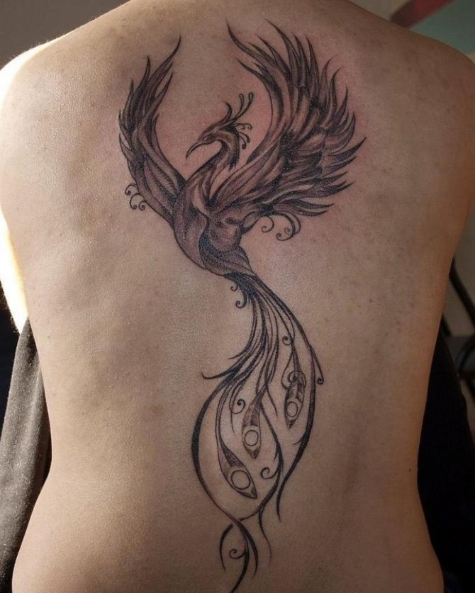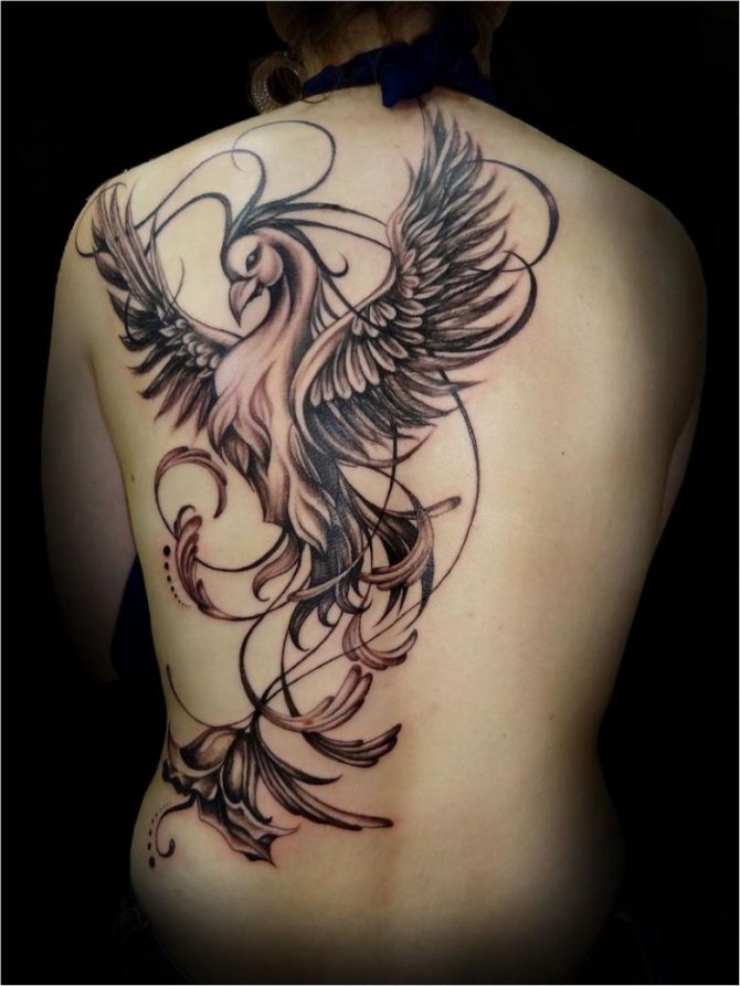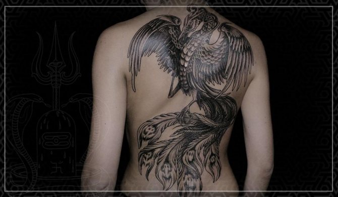 Important ! Contrairement à d'autres types de tatouages, le tatouage du phénix a la même signification pour les hommes et les femmes. L'interprétation principale est la renaissance, le renouvellement de l'âme et du corps.