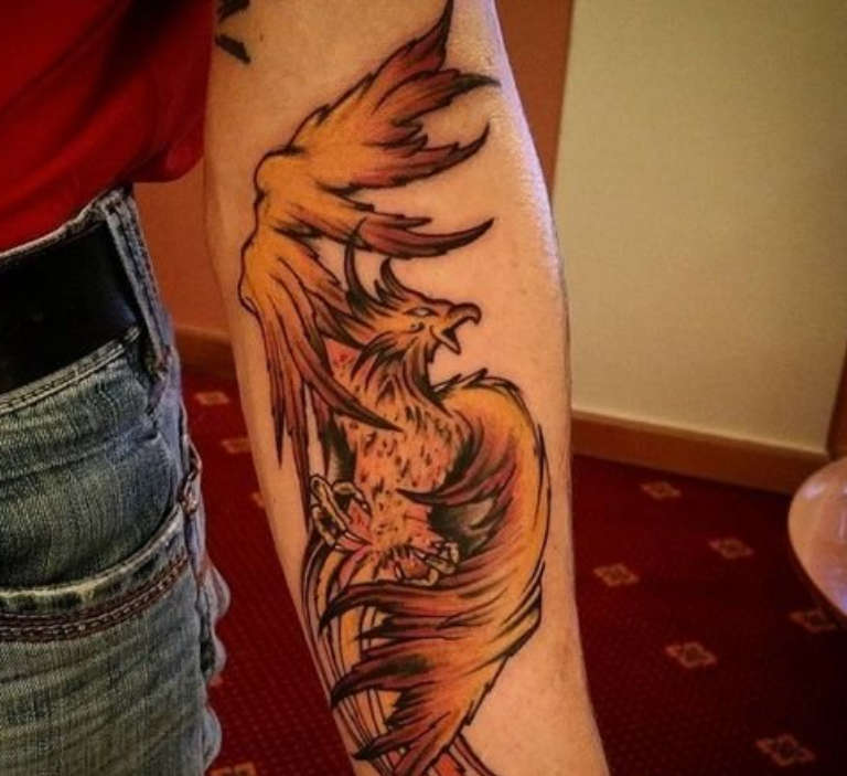 La créature mythologique pour hommes est un talisman qui protège contre divers malheurs. Souvent, le tatouage du phénix est inscrit sur la peau des personnes dont la profession est associée aux cascades, à la guerre, au vol.