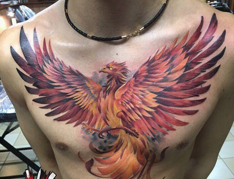 Les idées de sketchs masculins ont évolué au fil du temps. Le tatouage des prêtres égyptiens a été remplacé par le symbolisme romain, et la signification principale de l'oiseau de feu est la purification par le feu des vices et des passions grâce à une grande patience. Les hommes se caractérisent par l'audace de la décision lors du choix de l'emplacement du tatouage.