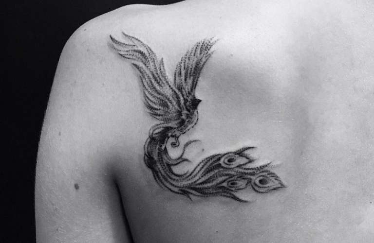 La zone située entre les omoplates abrite l'énergie de l'ego masculin et de l'ambition. Un tatouage de phénix sur l'omoplate aide à se débarrasser de l'influence du passé.