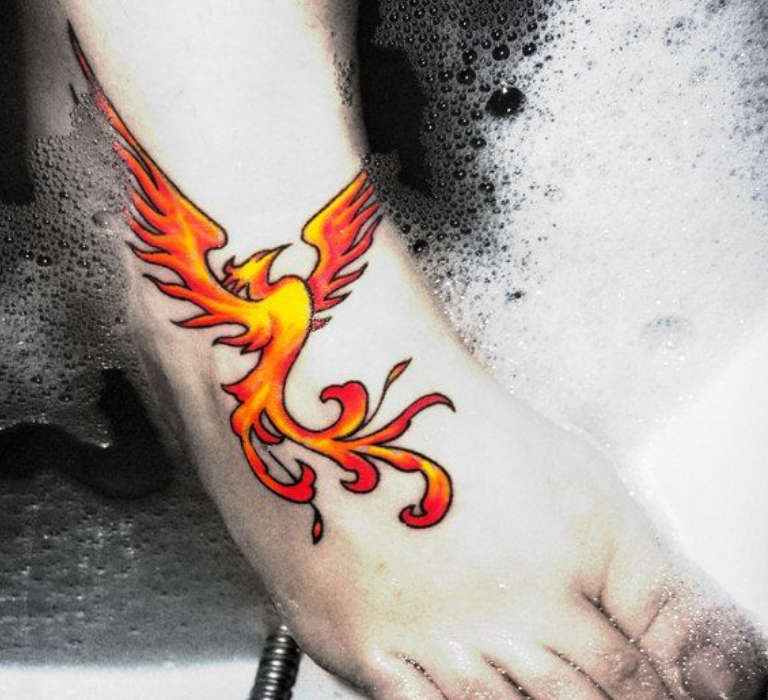 L'oiseau majestueux est généralement peint en rouge-orange ou en or flamboyant. L'accent est mis sur la couleur rouge pour faire ressortir les plus petites courbes du corps de l'oiseau. Selon l'endroit exact où le tatouage est appliqué, l'artiste peut ajouter une flamme, un feu ou un soleil au phénix.
