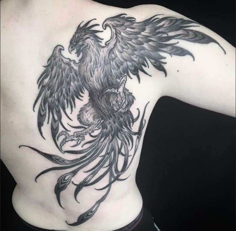 Phénix gris ou noir - Dans ce cas, le tatouage est associé à la mort, aux souvenirs déprimants du passé, car cette couleur est comparée à la cendre.