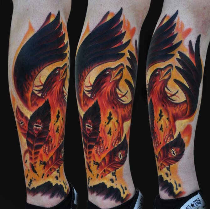 Une autre caractéristique importante du phénix est son essence ardente. Par essence, le phénix est le feu incarné. Cela donne aux tatouages représentant cet oiseau de telles significations :