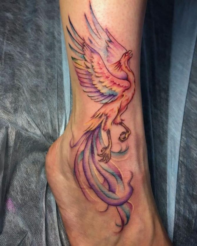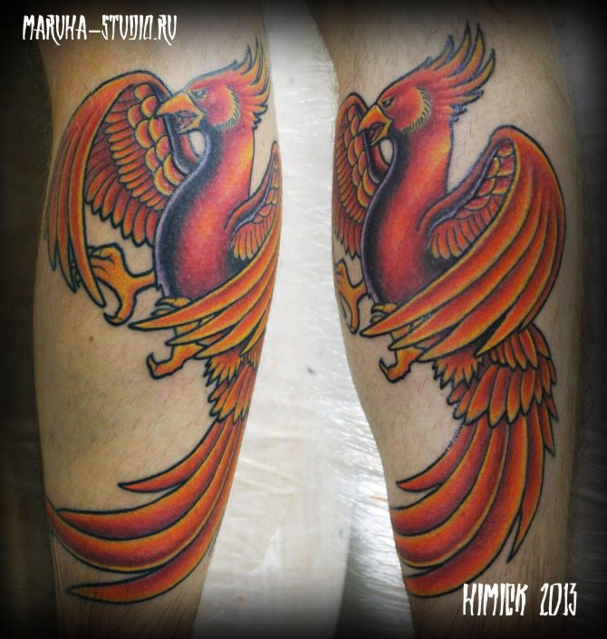 Il existe plusieurs versions de l'immortalité de l'oiseau de feu dans les différentes interprétations de la légende. Il s'agit de la mort par auto-immolation suivie d'une résurrection des cendres, d'une vie incroyablement longue qui dure plusieurs siècles et se termine par la naissance d'un seul poussin qui enterre son parent immédiatement après sa naissance, et d'une variante avec immortalité absolue, invulnérabilité de cet oiseau. De ces trois légendes, qui parlent d'une manière ou d'une autre d'immortalité, ressortent plusieurs symboles qui forment la signification finale du tatouage phénix :