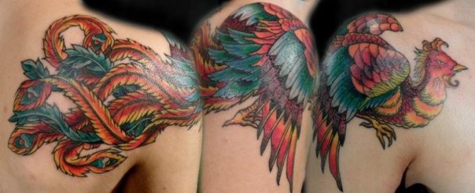 phénix multicolore. - Dans la zone, un tel tatouage peut être interprété comme le dessin d'un coq, alors que dans la zone, ils marquent les personnes abattues ;