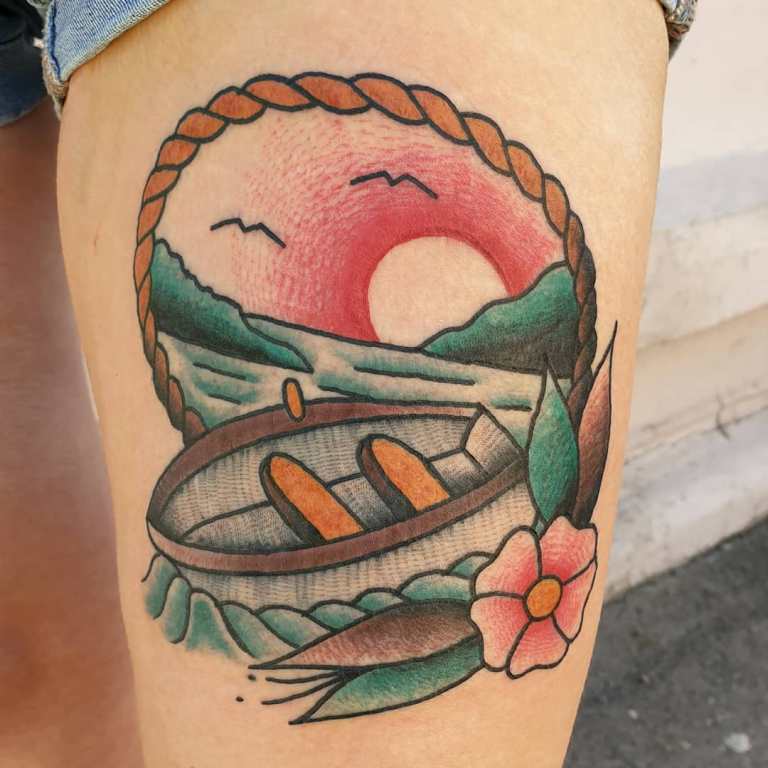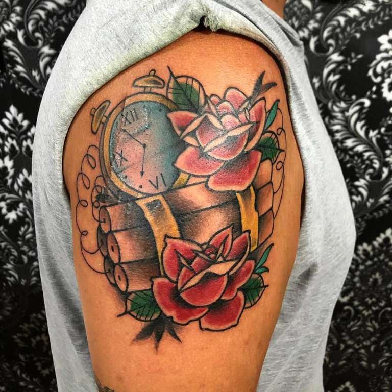 | Le tatouage "old school" avec "Good Time" en anglais rappelle à celui qui le porte un voyage au cours duquel s'est produit un événement qui a changé sa vie. Il peut s'agir d'une remise en question de ce qui se passe ou de la rencontre d'un futur conjoint, de l'obtention d'un emploi de rêve ou d'un voyage à la mer riche en aventures. |
