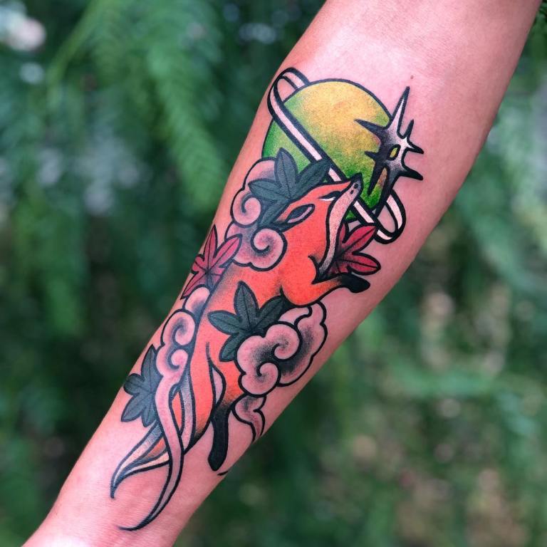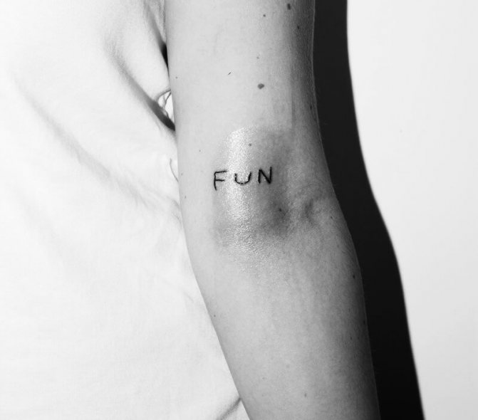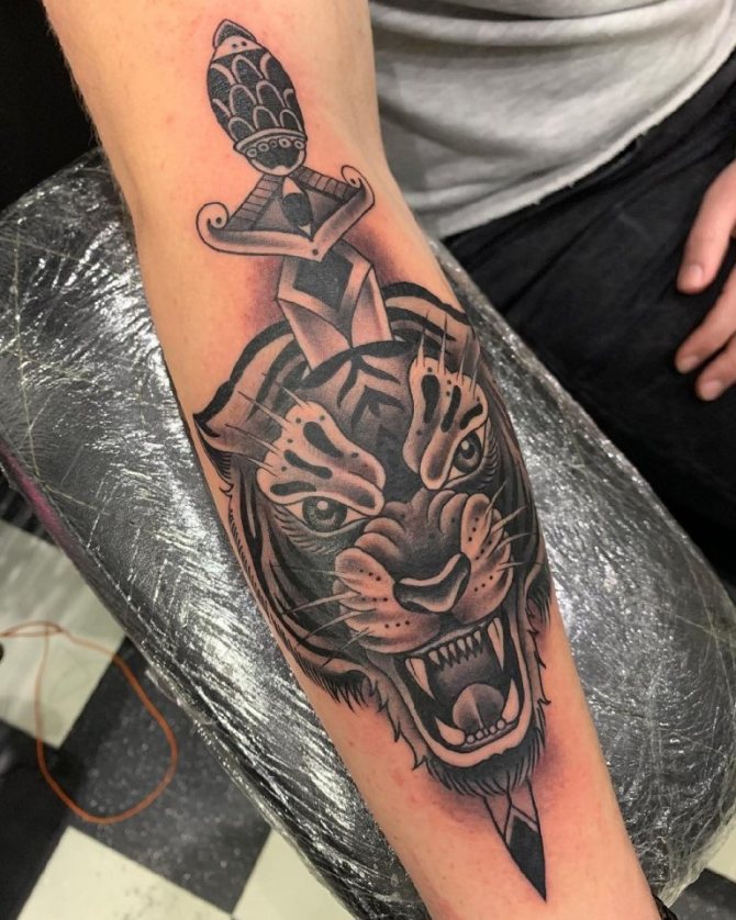 - Avant-bras. Cette partie du corps est populaire en raison de la vaste surface de travail qu'elle offre. Un espace suffisant permet au tatoueur de détailler une image de taille moyenne ou grande, minimisant ainsi la probabilité d'une décoloration prématurée du pigment ou de la transformation du tatouage en une tache solide.