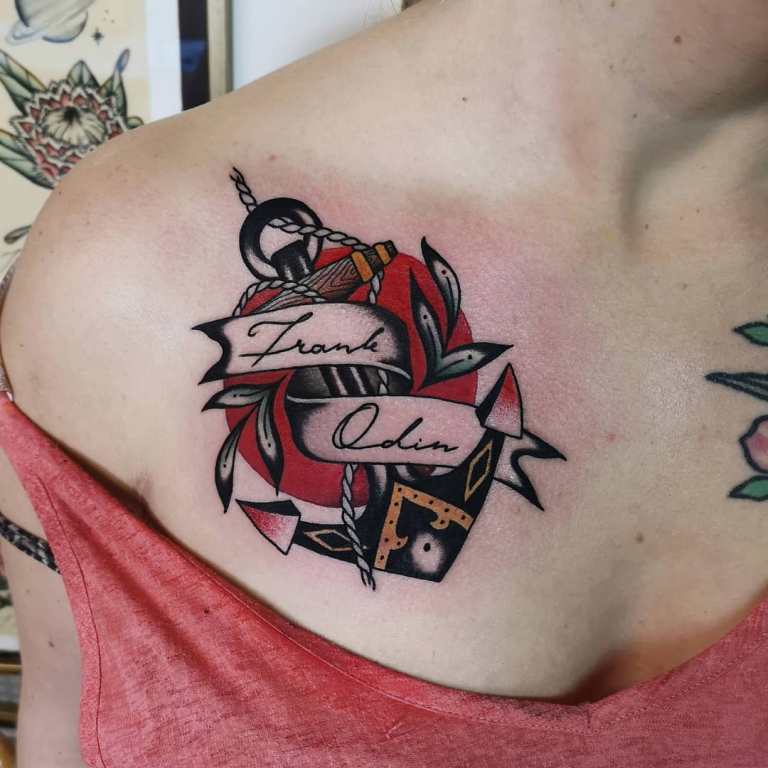 | Une ancre inscrite sur le pied symbolise l'attachement émotionnel du porteur d'un tel tatouage à son objet pour exprimer des sentiments lucides. Le fait que l'unité métallique soit décorée de fleurs et de cœurs suggère que l'amour ressenti par la personne est réciproque et la rend heureuse. En choisissant le motif en question, une personne tente de souligner à son entourage sa réticence à changer sa vie et son désir de rester dans son état actuel le plus longtemps possible. |
