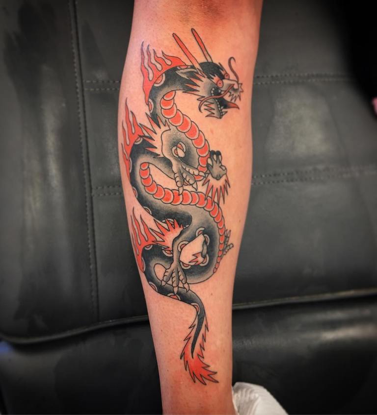 - Si vous le souhaitez, vous pouvez ajouter une ombre et une pénombre. Les ombres et les pénombres peuvent être terminées en appliquant un flux de pigments classique. Bien que la technique originale de la vieille école n'implique qu'un ombrage uniforme du corps principal de l'image, les maîtres tatoueurs modernes rendent leur travail plus expressif et non standard en introduisant des caractéristiques supplémentaires. Mais pour ne pas s'écarter du style original, malgré la présence éventuelle d'ombres, les transitions entre les nuances de pigments doivent être nettes et contrastées.