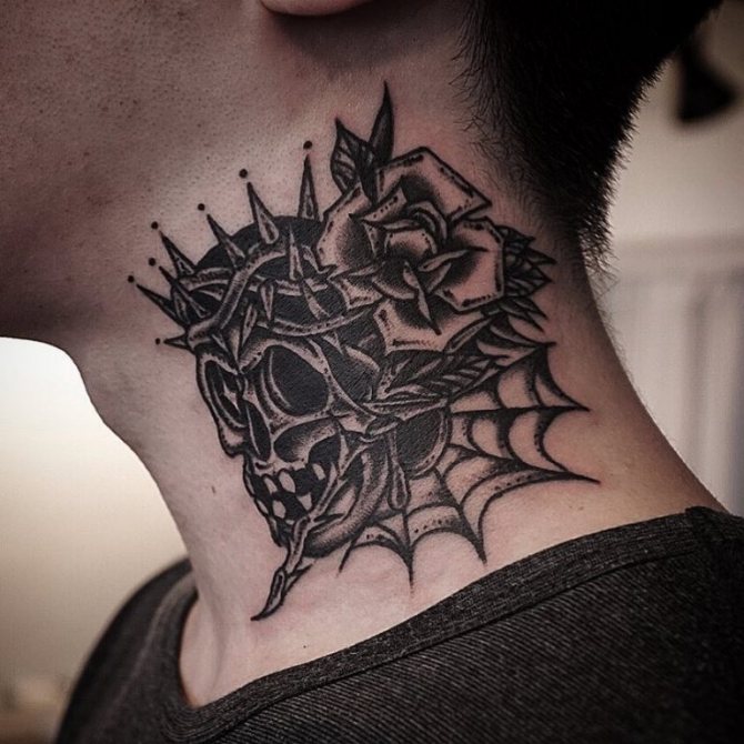 Aujourd'hui, nous vous proposons de réaliser la signification du tatouage sous la forme d'une toile d'araignée. Dans différentes cultures, il est considéré comme un fil conducteur ou salvateur qui relie le ciel et la terre, ou d'autres points du plan horizontal. Il représente la fragilité de la réalité, qui est illusoire et trompeuse.