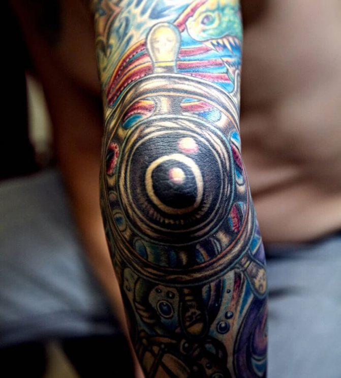 - Les extrémités supérieures sont complètes. Les "manches" partent de l'épaule et se terminent à la main, parfois même à l'extérieur de la paume. Ce travail de grande envergure est réalisé en 5 à 7 sessions. Le résultat du travail du tatoueur est une image très détaillée sur la peau, qui peut être lue pour en savoir plus sur les valeurs de la vie du porteur du tatouage, ses expériences ou son point de vue sur ce qui se passe.