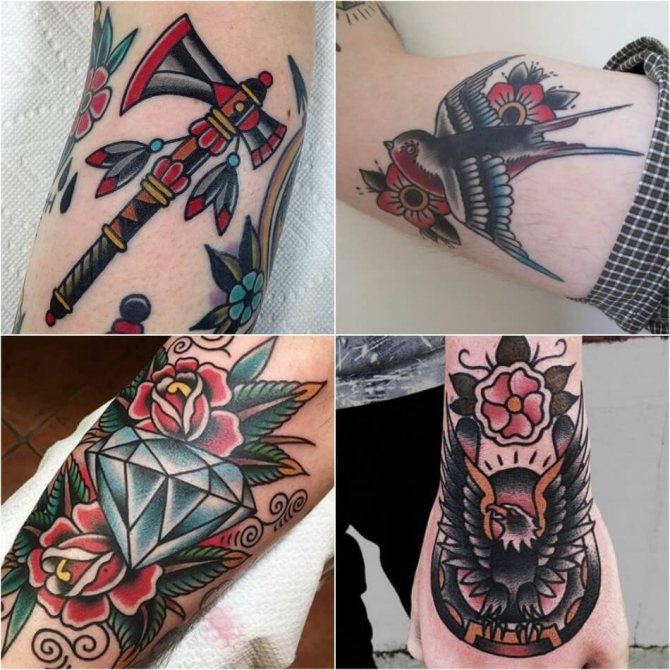 L'histoire de l'oldschool commence avec les marins et remonte à la fin du XIXe siècle. Exactement les personnes dont la vie était associée à la mer, nous devons être reconnaissants pour ce tatouage brillant, concis mais significatif. Les marins étaient très superstitieux, et les tatouages étaient la meilleure solution pour toujours avoir sur soi de nombreux talismans et amulettes. Les sujets les plus populaires à l'époque étaient Ancres, hirondelles, cœur, vents se sont levés