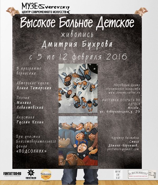 Le 5 février 2021, le Zverev Center for Contemporary Art inaugurera une exposition de peintures décoratives audacieuses et ironiques de l'artiste et tatoueur moscovite Dmitry Bukhrov. L'exposition comprend environ 50 peintures dans le sens de l'art naïf. Deux d'entre eux seront vendus au profit des pupilles de la Sunflower Charity Foundation - des enfants atteints de déficiences immunitaires.
