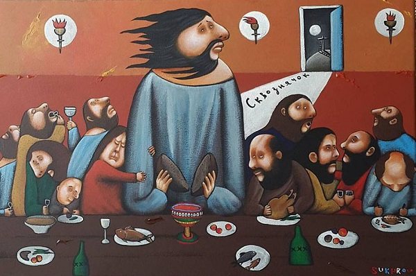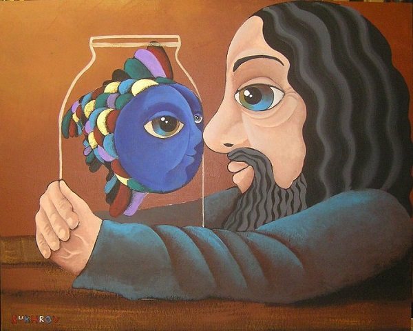 L'artiste Dmitry Bukhrov "Le prêtre Lopatin et le poisson".