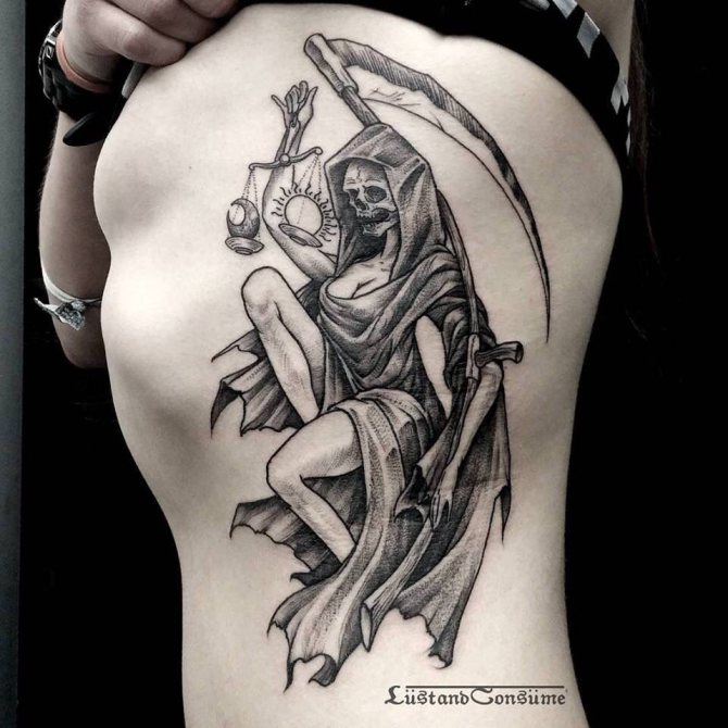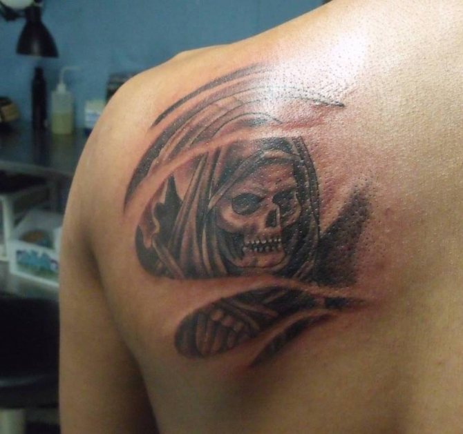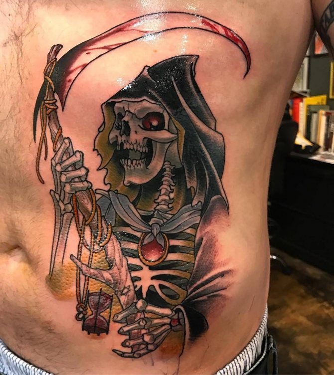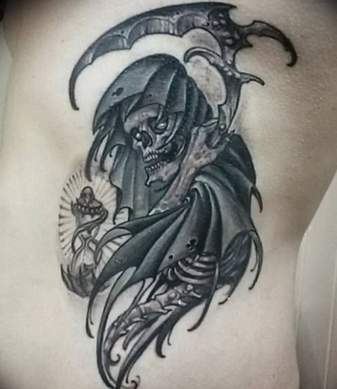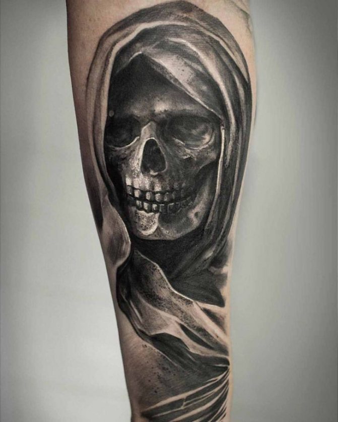 Le symbolisme d'un tatouage de mort peut être à la fois universellement reconnu et strictement individualisé. Comme nous l'avons mentionné ci-dessus, le choix d'un tel plan caractérise son propriétaire comme une personne forte et volontaire qui ne vit que par ses règles, ainsi l'application d'un tel dessin sur le corps peut être une démonstration de l'absence de peur, de l'amour du risque et des situations provoquant la libération d'adrénaline. Dans de nombreux cas, le tatouage sert d'amulette puissante qui, selon le propriétaire, est capable de protéger contre toutes sortes de problèmes, de maladies ou de dangers. Des détails supplémentaires peuvent également influencer le symbolisme du dessin.