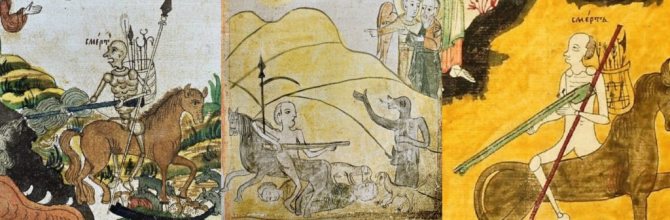 En Russie, sur certaines miniatures de l'Apocalypse, depuis le XVIe siècle, on trouve des images du quatrième cavalier avec un arc, une hache, un cor de chasse et une lancette. Voilà à quoi ressemble la mort russe.