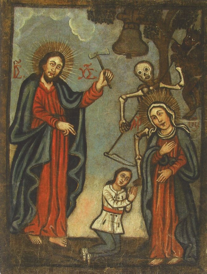 L'osseux avec la scie contre Jésus avec la cloche. La représentation de la mort dans les icônes orthodoxes