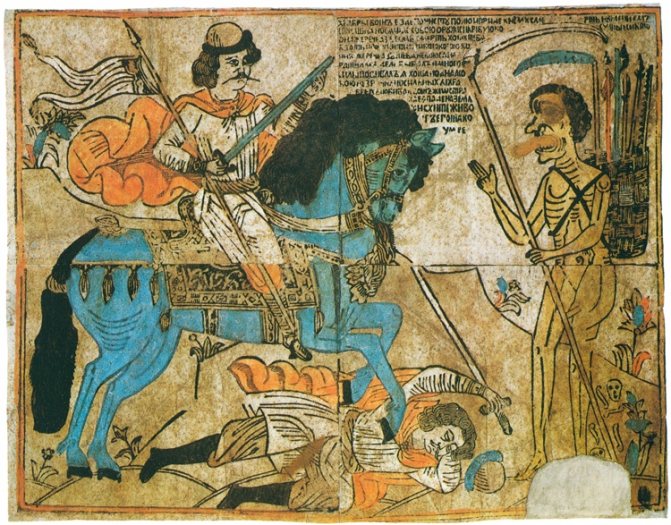Des complots similaires sont apparus en Russie. Par exemple, les impressions populaires bon marché montrent souvent un crâne avec un serpent rampant dans les orbites, des fruits fanés - une sorte de nature morte - au premier plan, et un sablier ailé au-dessus. Tous ces symboles de la brève heure terrestre impartie à l'homme étaient des tentatives de réinterprétation des allégories européennes.
