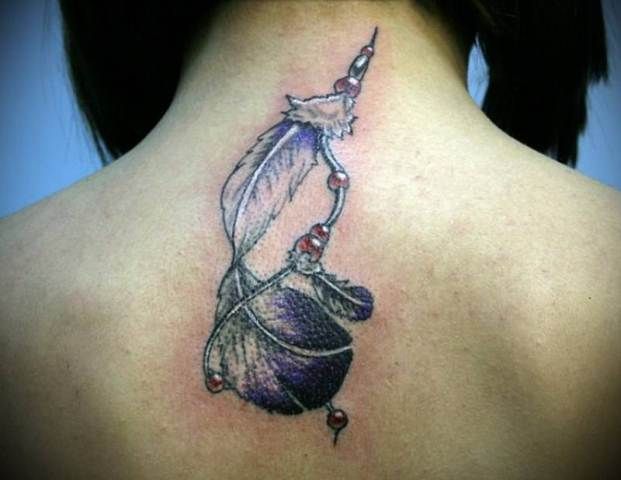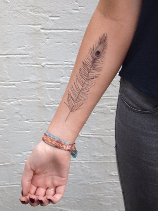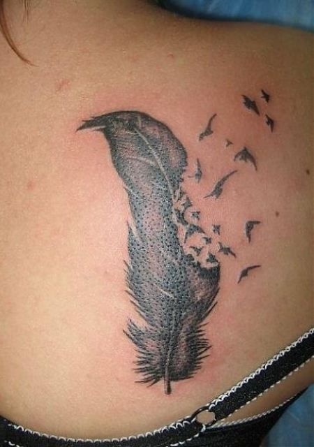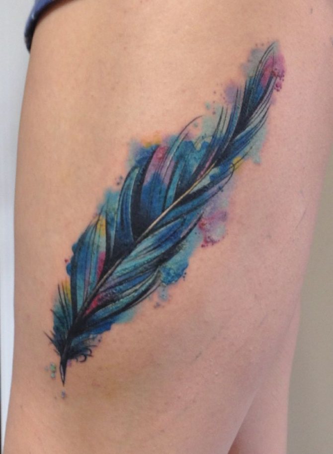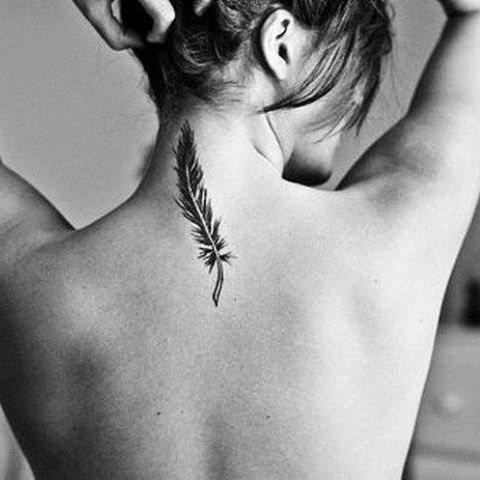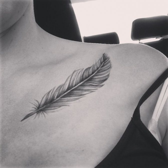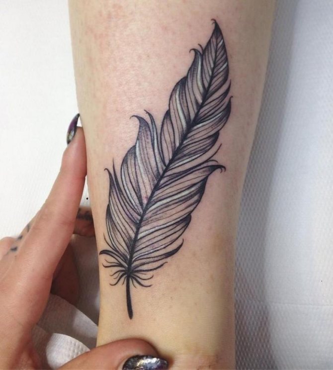 Très souvent, les filles choisissent le tatouage d'une plume, réalisé sur le dos. De cette façon, le beau sexe peut mettre en valeur sa tendresse. Il sera également un symbole de cyclicité et de renouveau.